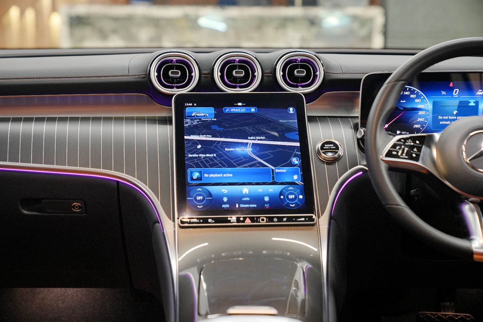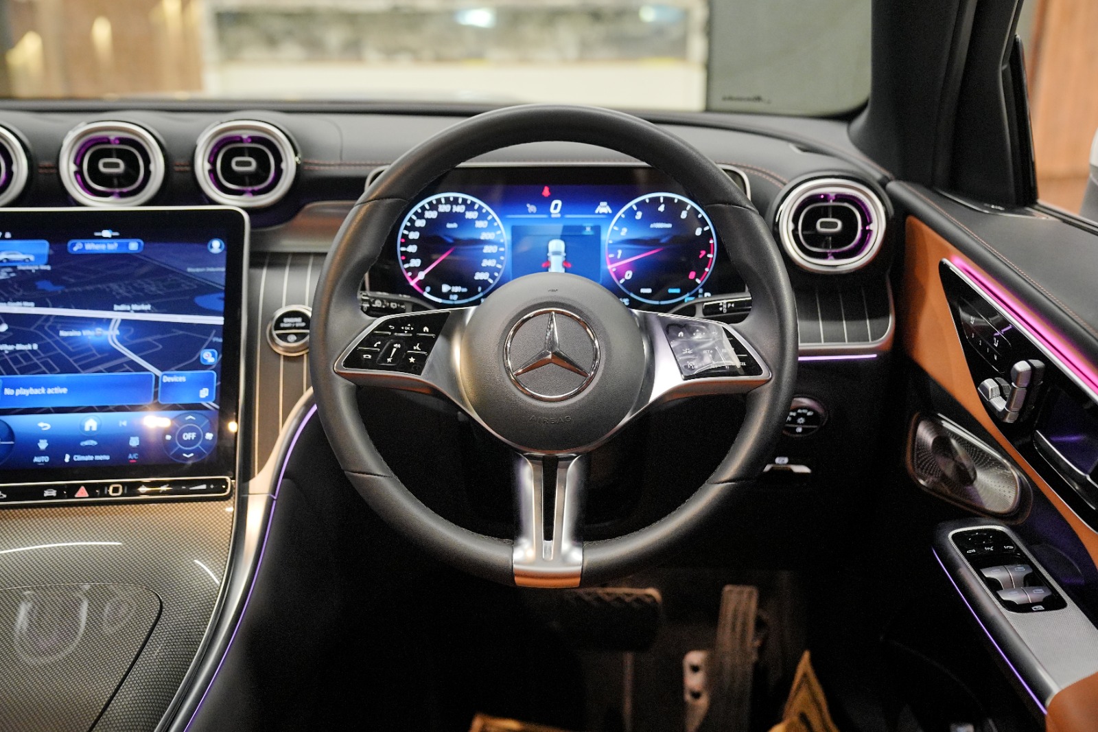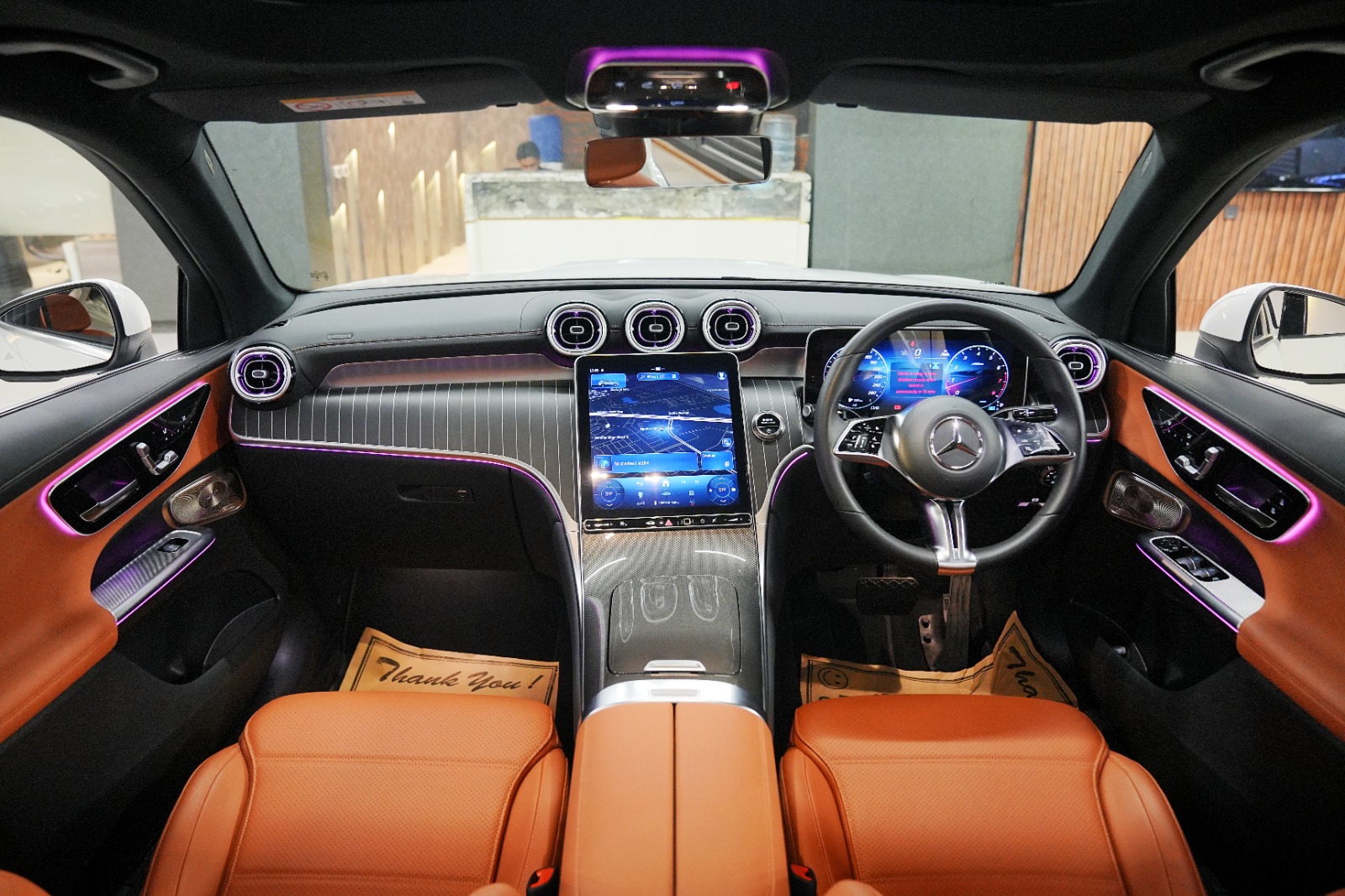 Luxury Dark Wood & Light Aluminium Interior Trim with embedded ambient lighting system